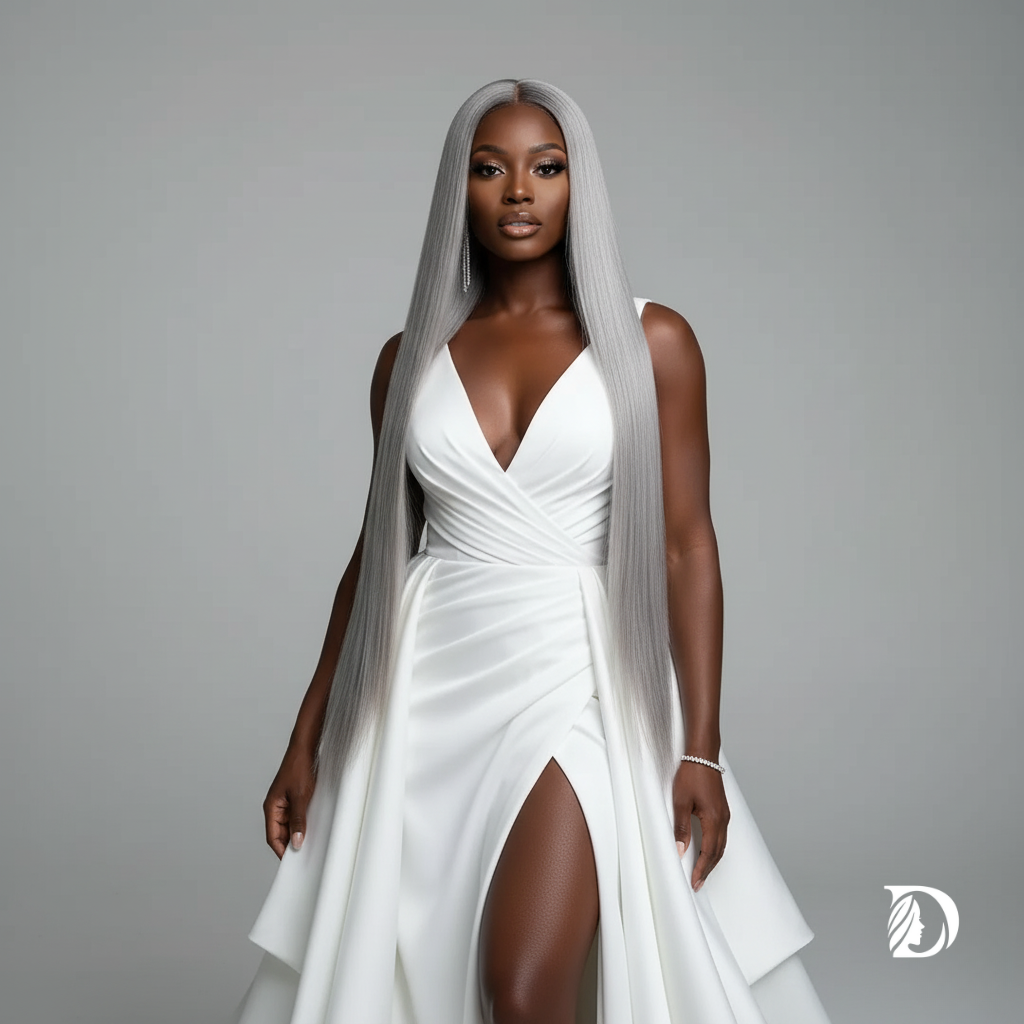 Silver Grey 13x6 HD Lace Front Wig – 100% Vietnamese Remy Human Hair, 220% Density, Straight 38-Inch, Pre-Plucked with Baby Hairline, Wigs for Woman - Black Woman