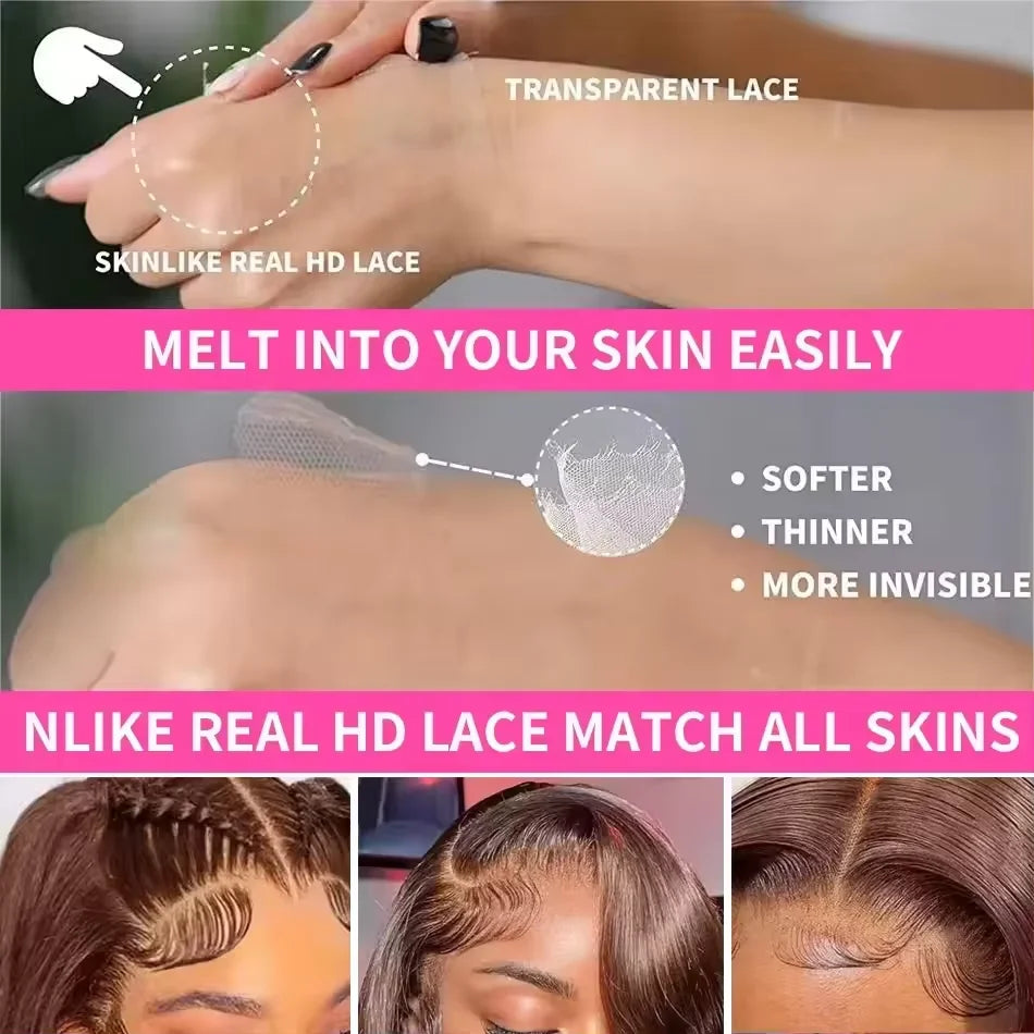 🔹 13x4 HD Transparent Swiss Lace: ultra-thin lace that blends flawlessly with any complexion for an invisible hairline.