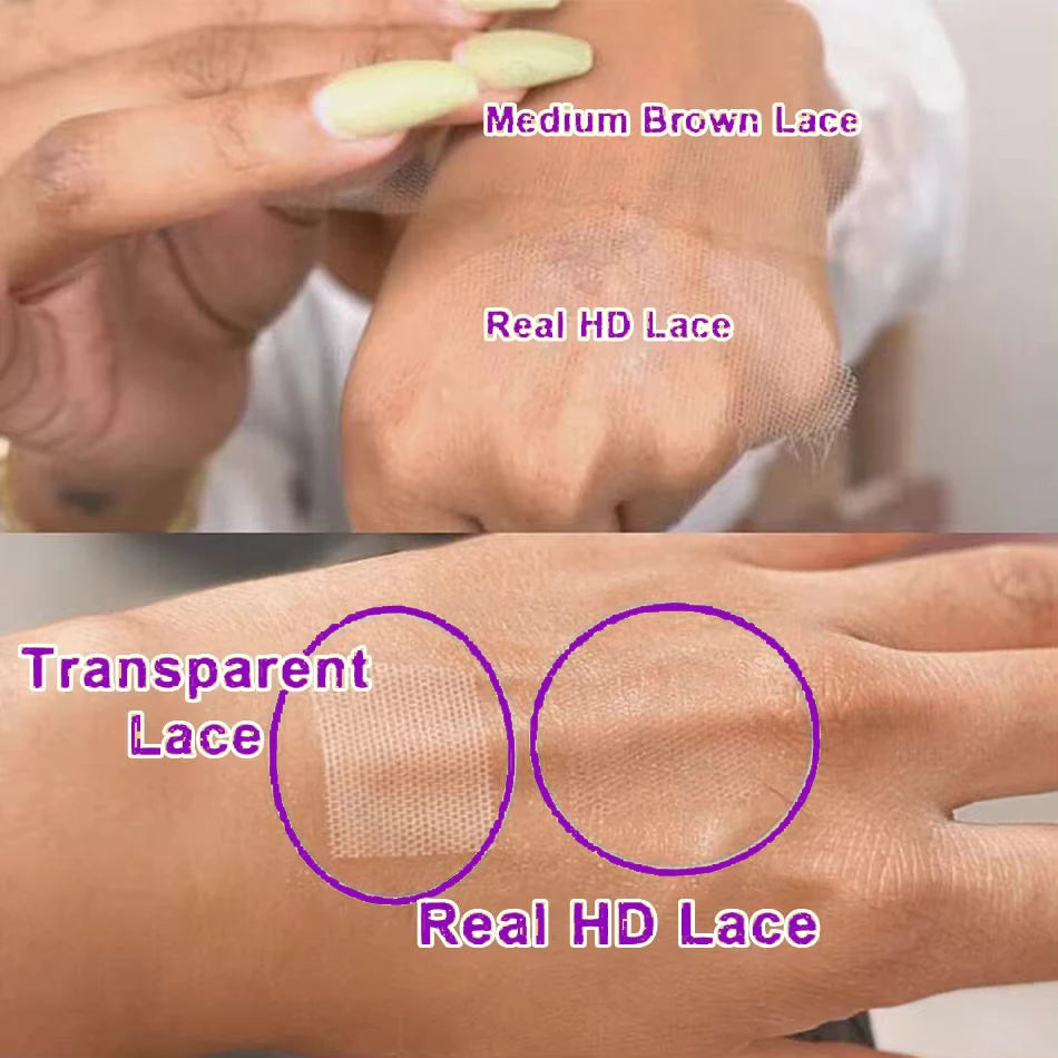 🔹 HD Transparent Swiss Lace: thin and breathable lace that melts seamlessly into all skin tones for an invisible hairline.