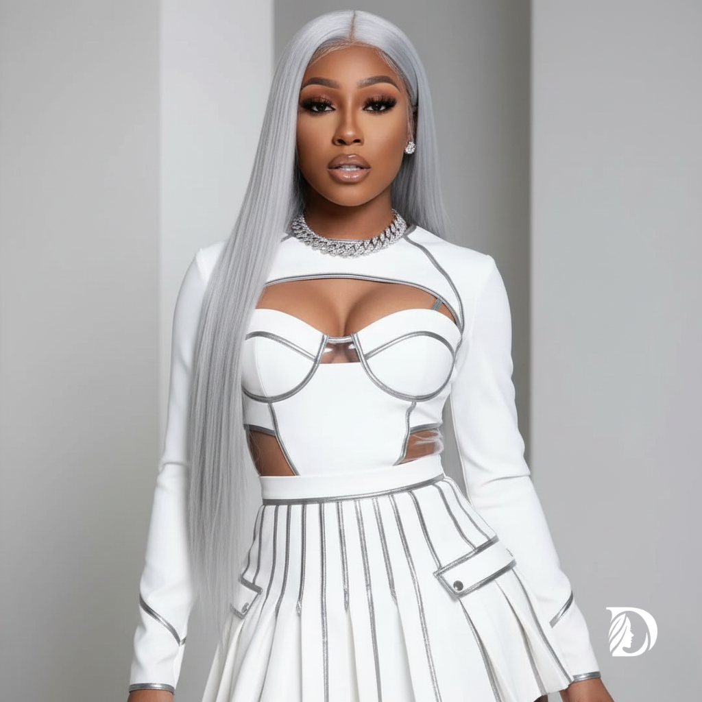 Its shimmering silver tone and ultra-smooth straight texture create a chic, timeless look for any occasion — bold, confident, and effortlessly beautiful.